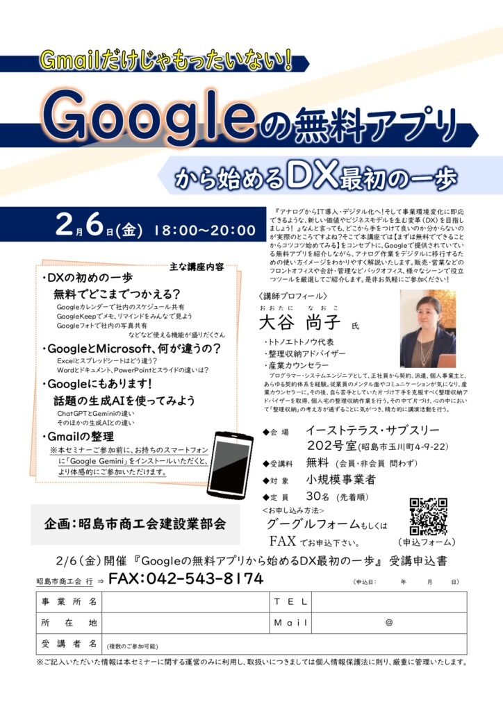 「Googleの無料アプリから始めるDXの最初の一歩」講習会のお知らせ